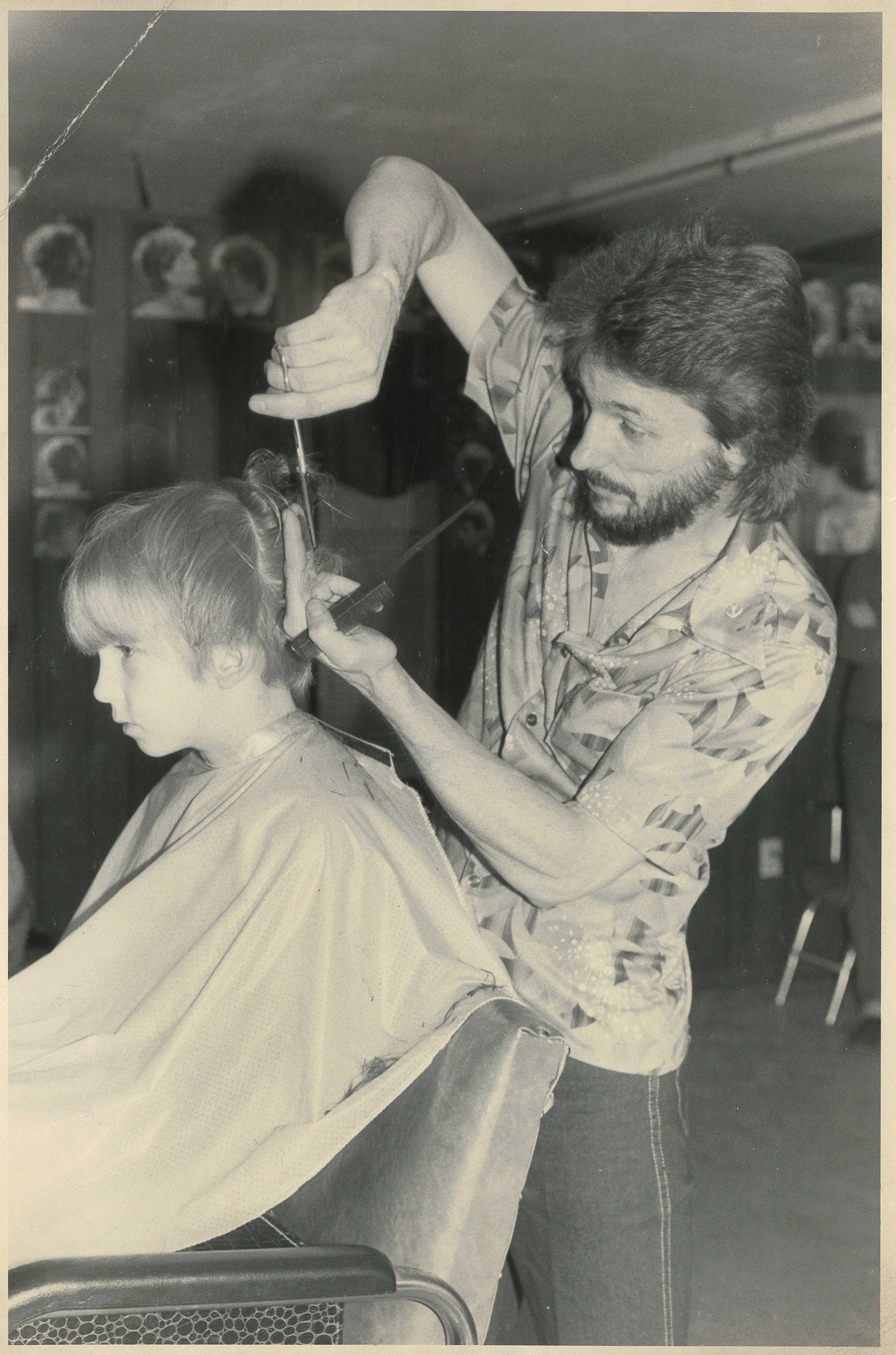 Ken Reeve, owner of Ken's Hairport ll, is shown cutting Rickey Gibson's hair during a special Valentine Cut'n Spray with proceeds going to the American Heart Association.Photograph Details