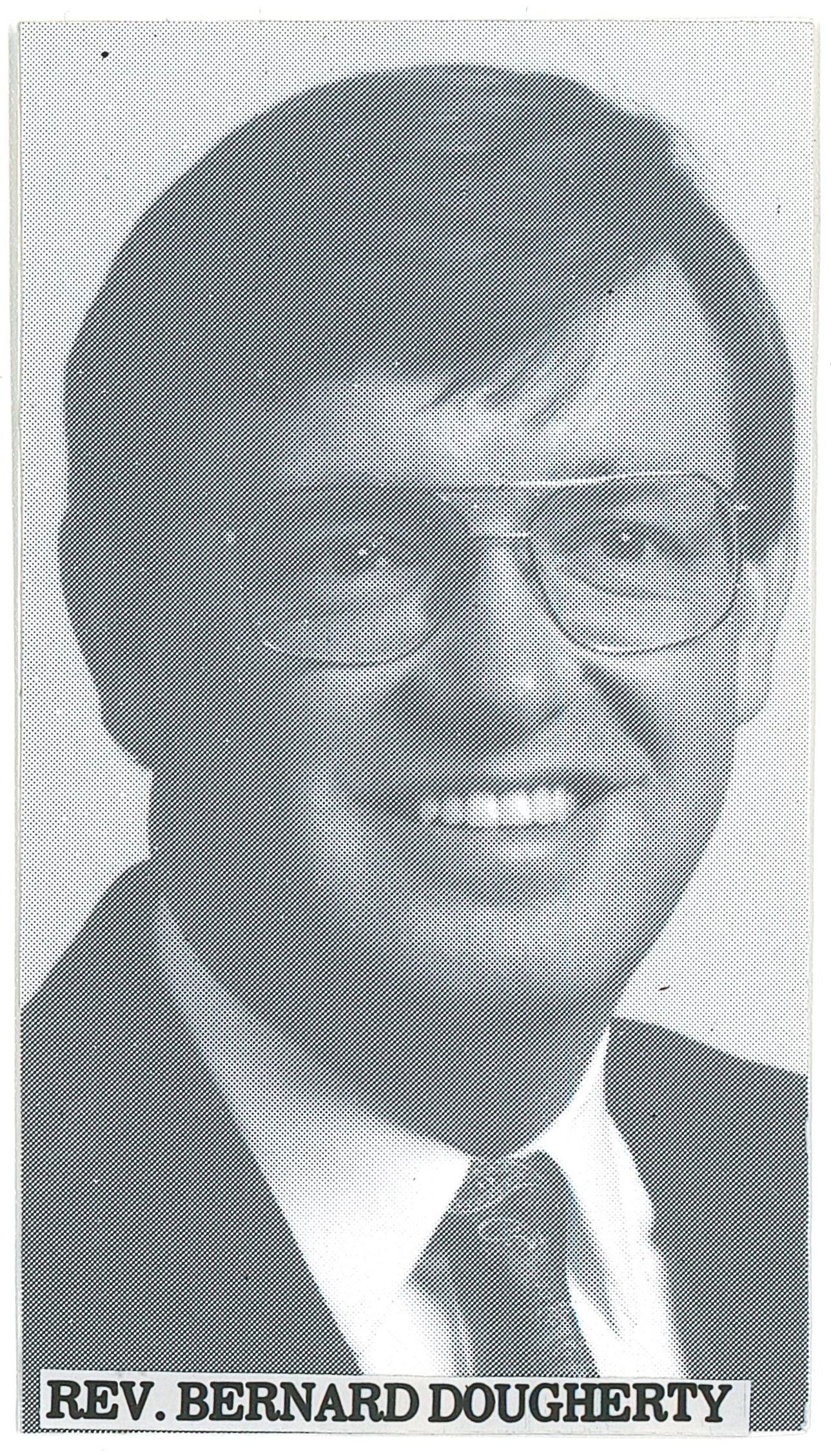 Rev. Bernard Dougherty. Rev. Dougherty became the new pastor for the Newton Falls Methodist Church on July 8, 1990. He was with the Methodist Church for almost two years before he accepted another appointment on July 1, 1992.Photograph Details