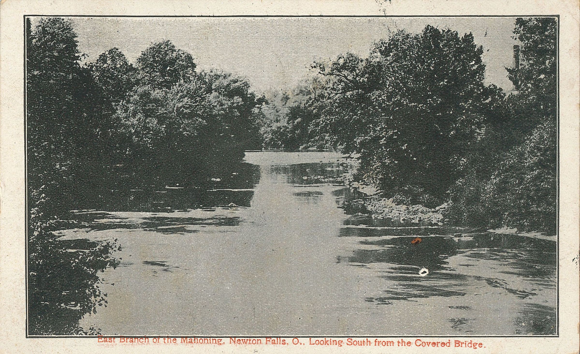 Postcard depicting the east branch of the Mahoning River, looking south from the covered bridge.Collection
