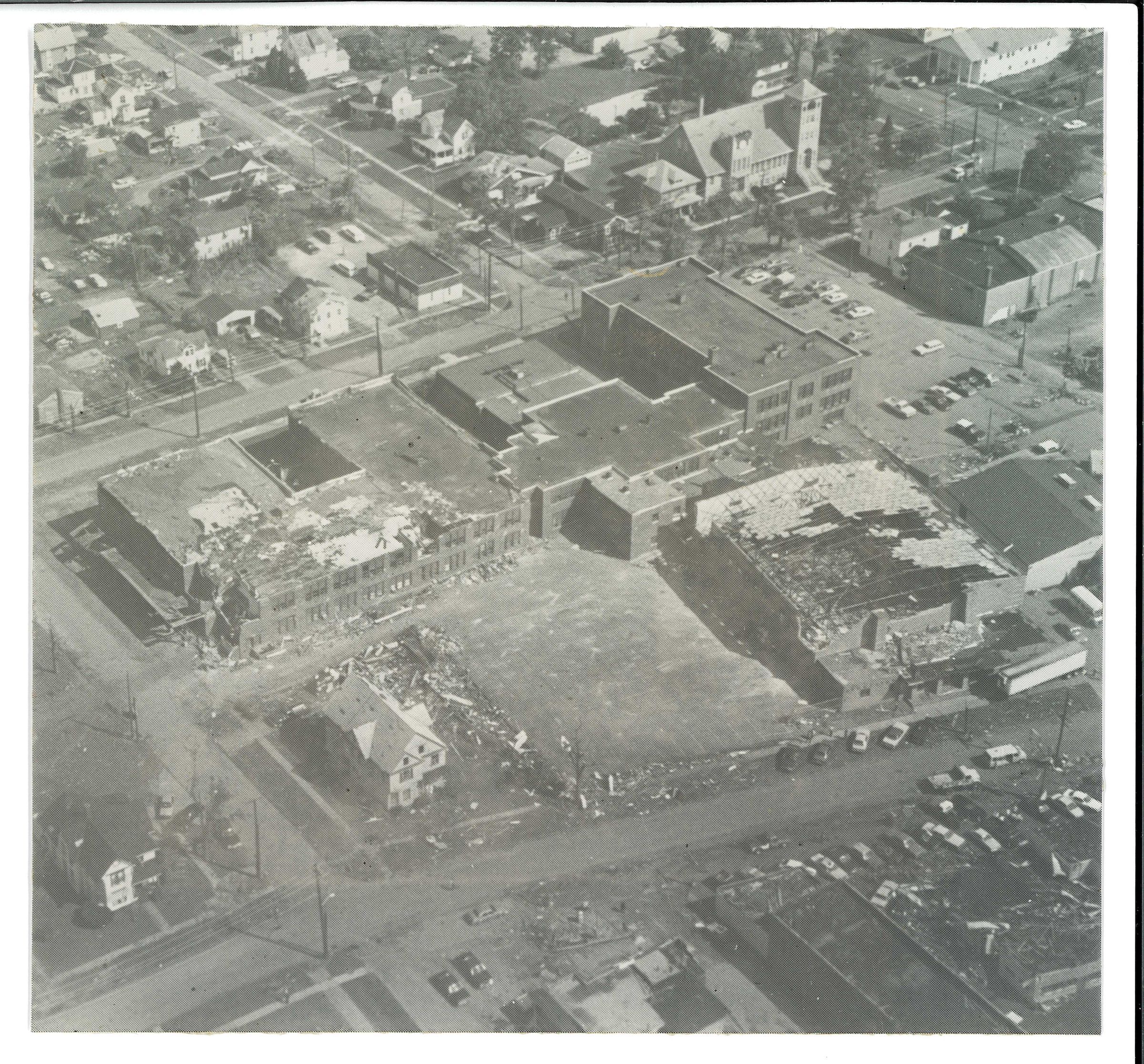 Aerial view of tornado damage to Newton Falls High School on North Center Street and the Gym on North Canal StreetPhotograph Details