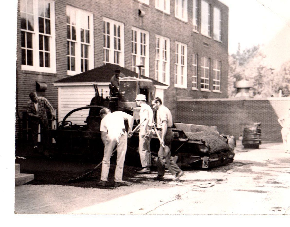 Workers at Arlington School applying new blacktop and extended the present playground.Photograph Details