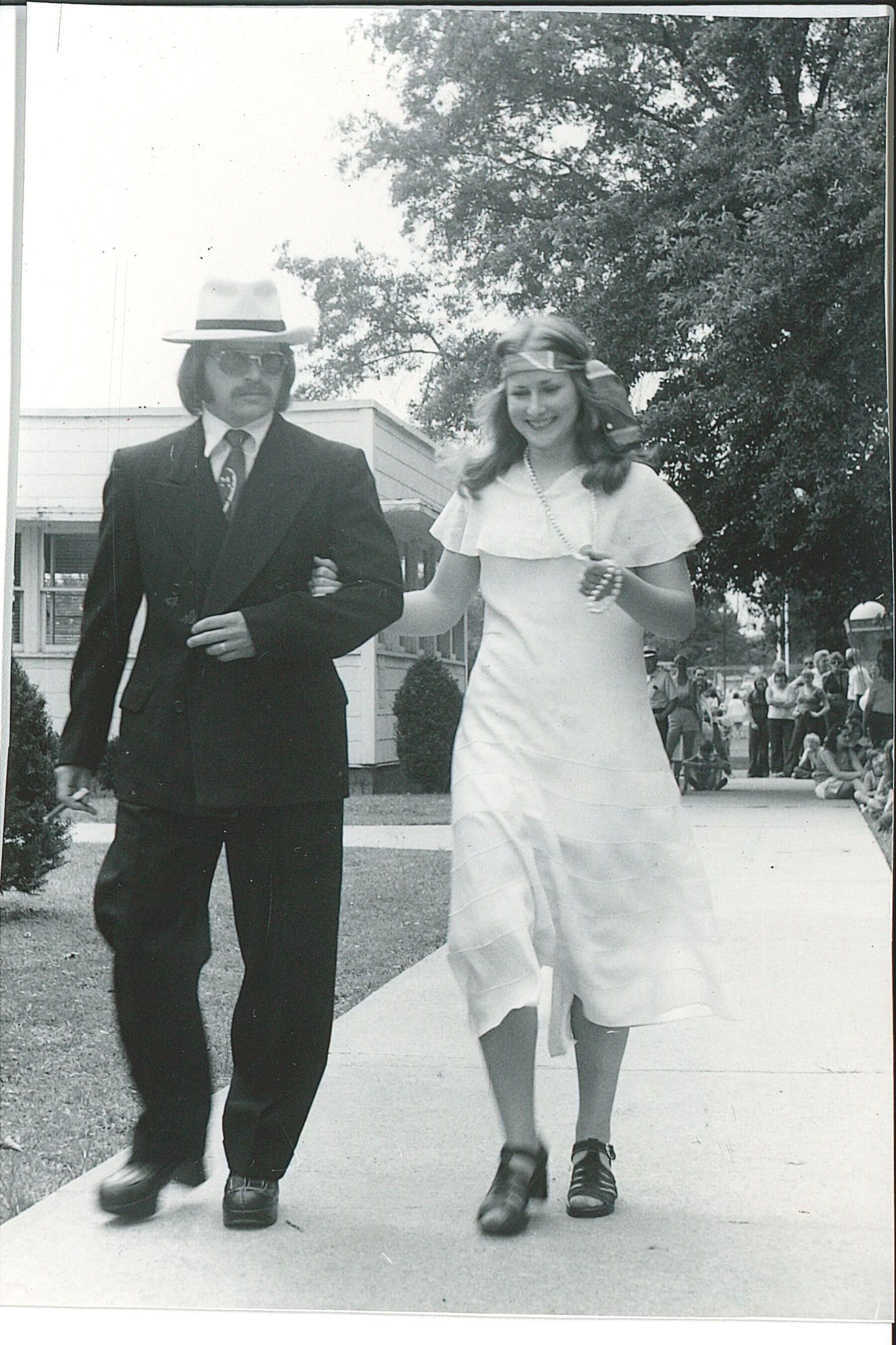 Unknown people modeling old-fashioned clothing for the Nostalgic Fashion Style Show held at the Community Center. Part of the 1976 Bicentennial celebration.Collection
