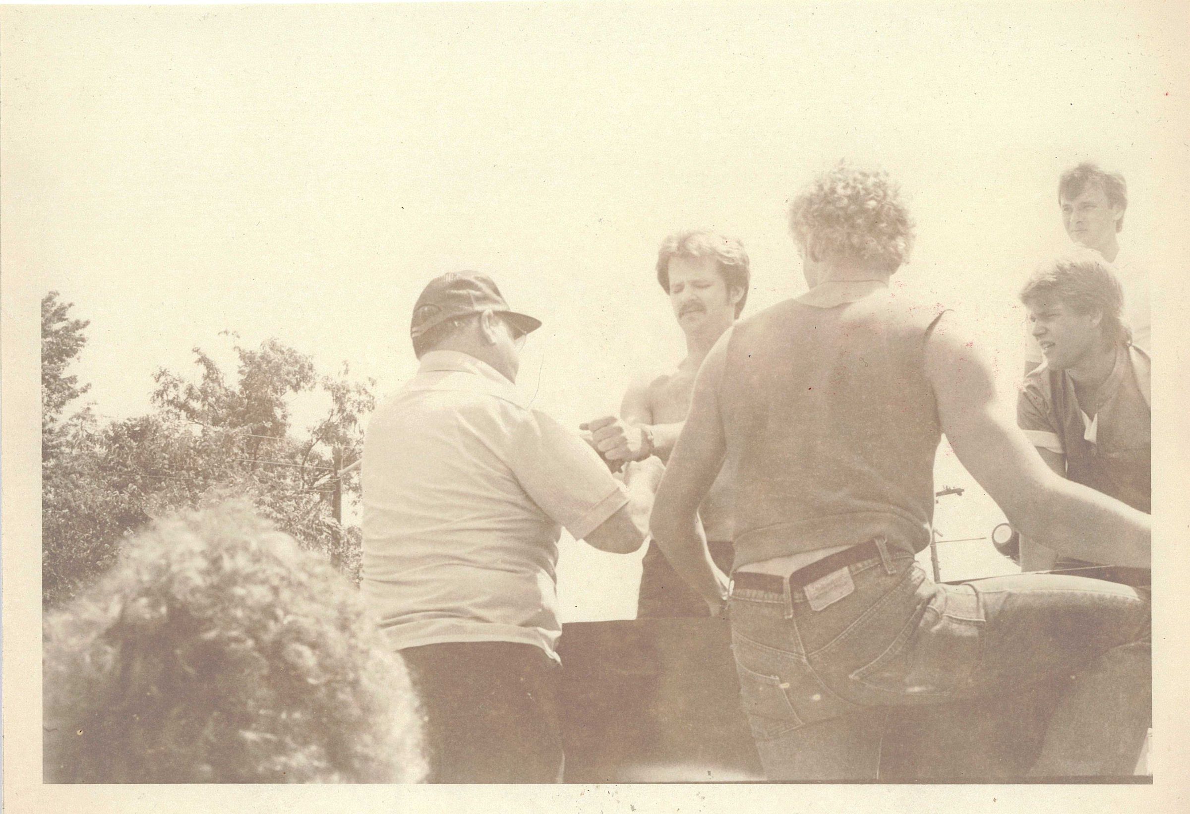 Steve Simpson (center) is preparing for his plunge into the Mahoning River.Photograph Details