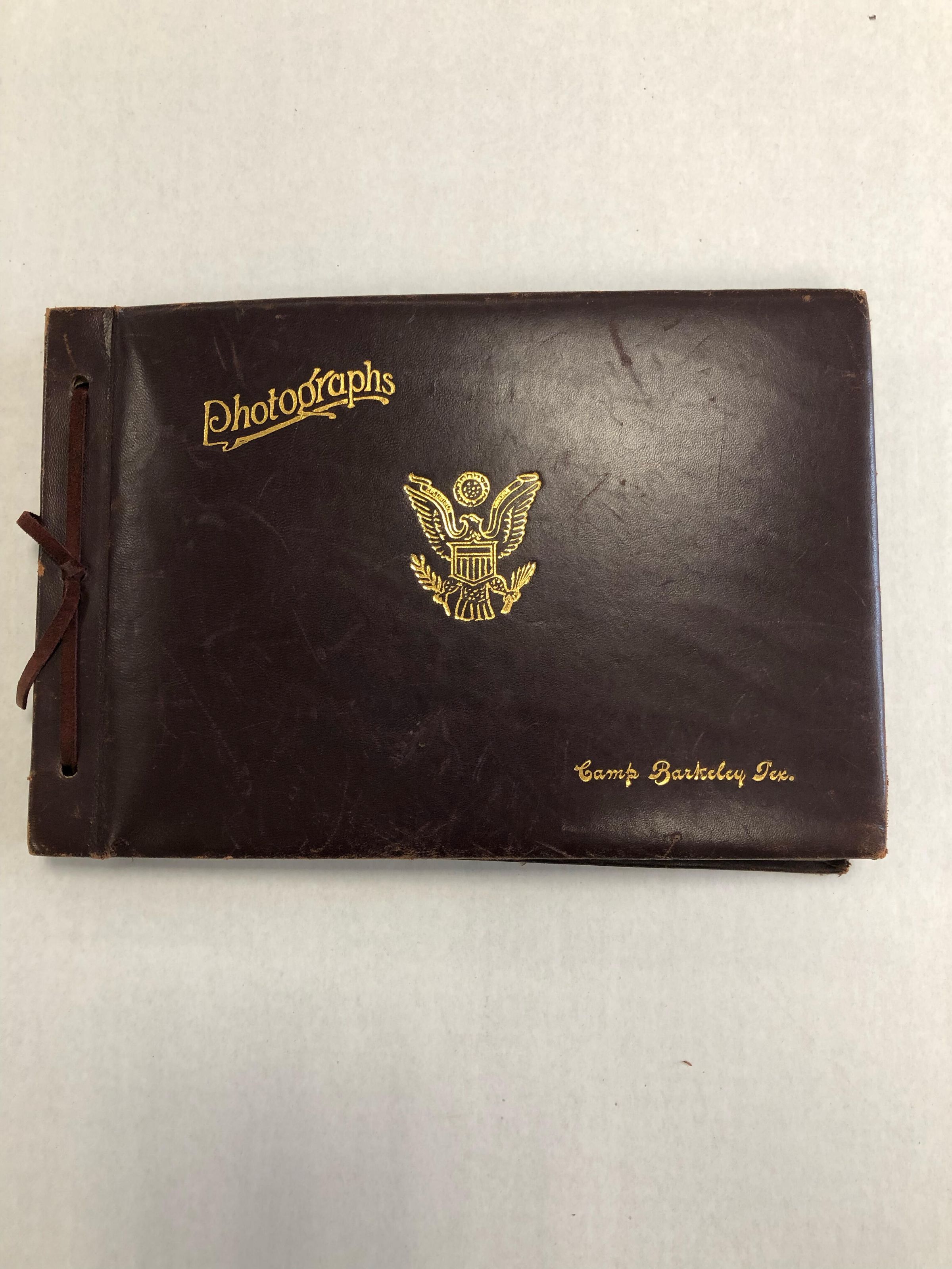 Photo album belonging to the Bednarcik family, showing wartime photographs relating to John Bednarcik and Andrew Bednarcik. Circa 1940s. Front cover reads: Photographs Camp Barkeley Tex.Collection