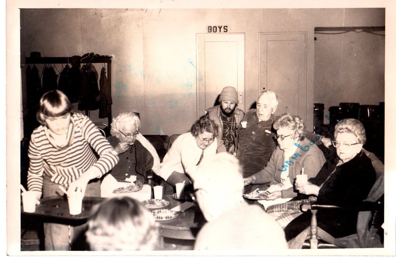 Scenes of blizzard, residents at the Community Center having a snack. Many were without electricity or heat.Photograph Details