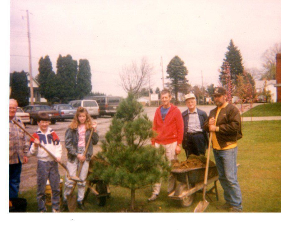 Braceville Lions Club members of served Arbor Day by planting a white pine at the LaBrae Middle School. It was dedicated to the memory of club members George McFarland.Photograph Details