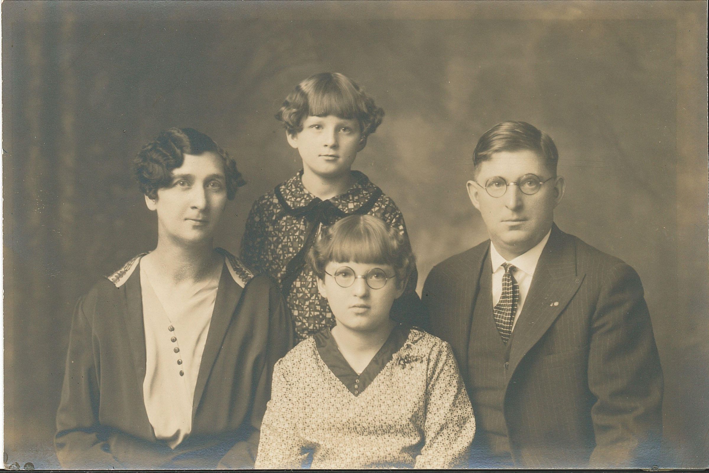 L-R: Blanche Read Burton (mother), Helen Burton Cummings (daughter), Marjorie Burton Hofus (daughter), and Carl W. Burton (father and owner of Burton's Dairy).Photograph Details