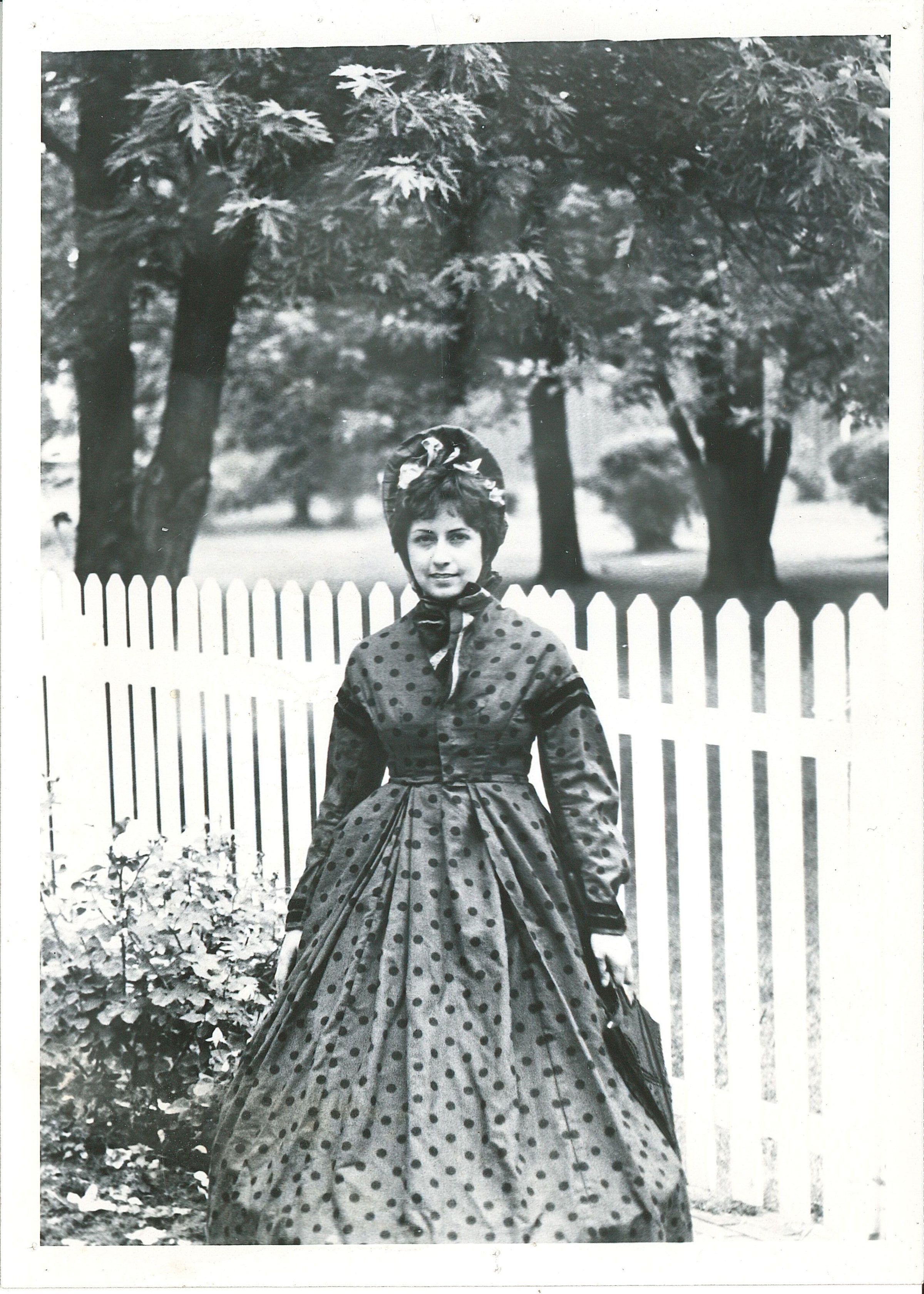 Darlene Vasbinder modeling historic costume in an advertisement for the 1976 Nostalgic Fashion Style Show. Darlene helped narrate the show.Photograph Details