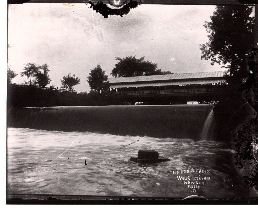 The Falls area. The Wooden double covered bridge with crosswalks is above. Located on the West Branch of the Mahoning River.Photograph Details