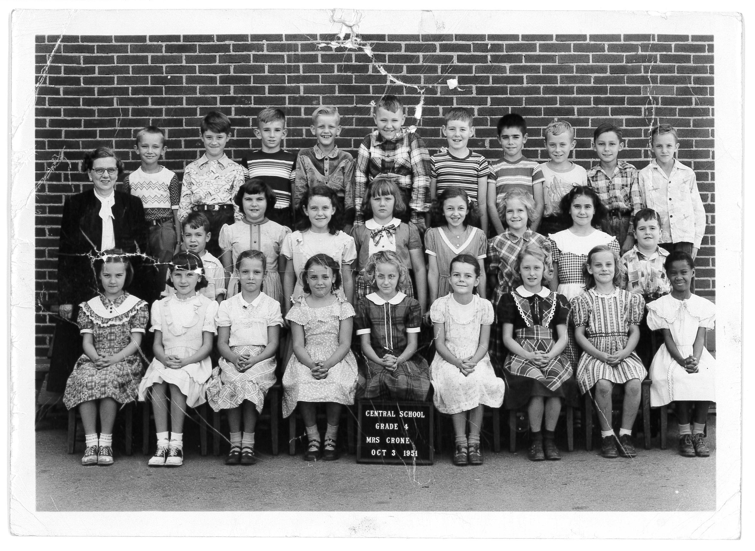 Central School Grade 4. Teacher Mrs. Violet Crone. 2nd row 1st boy is Frank Singer.Photograph Details