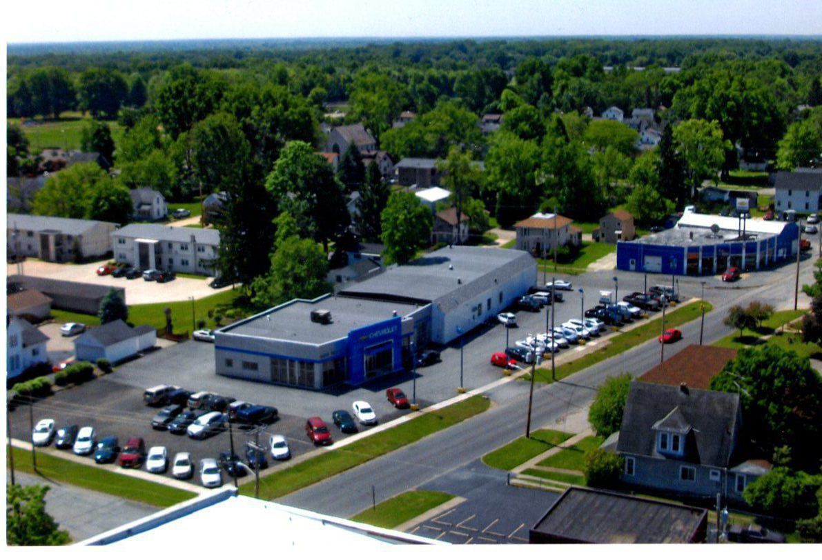 The Cole Valley Chevrolet Dealer is shown at center and right of picture on South Canal Street. The new showroom is center with repairs area at right. Last is the original building.Photograph Details