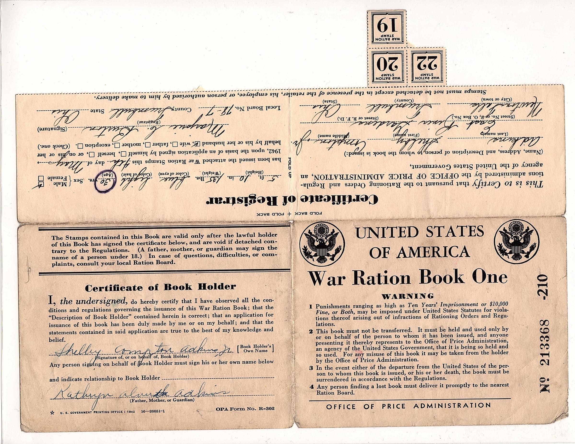 Shelby Adkins War Ration Book OneEntry/Object ID