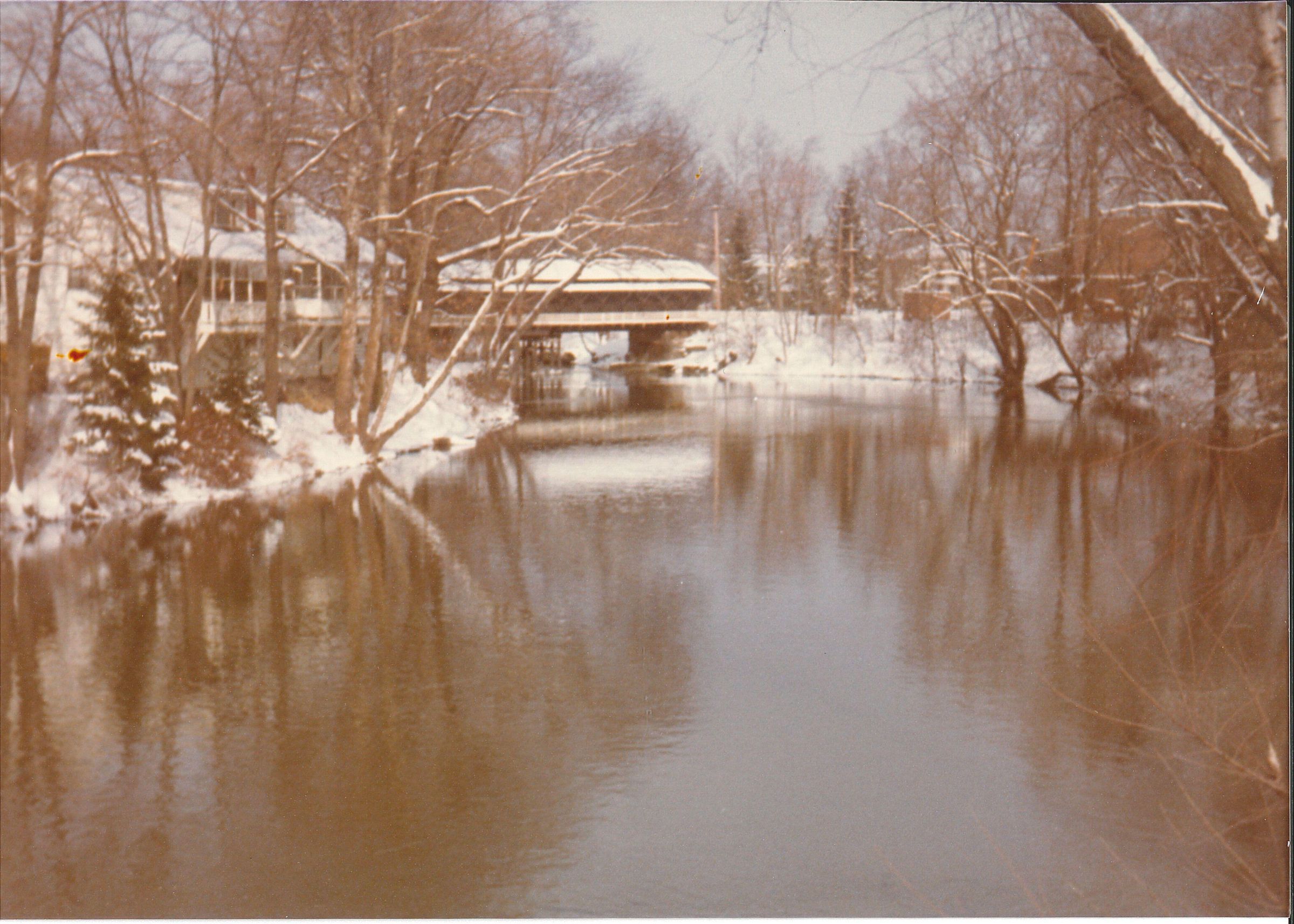 Photo of the covered bridge over the east branch of the Mahoning River. The bridge was built in 1831 and the walkway was added in 1921. It is the second oldest covered bridge in Ohio.