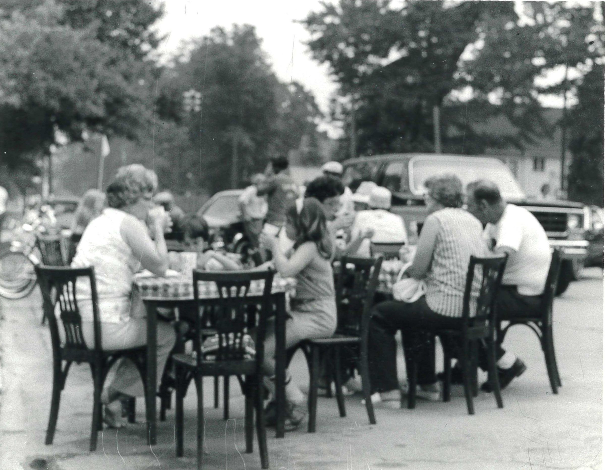Crowd scene of the sidewalk café on Broad Street.Photograph Details