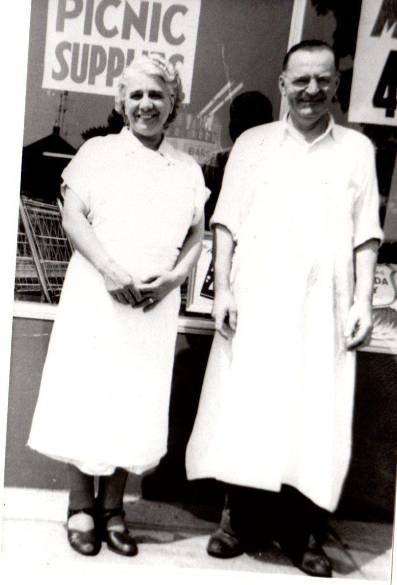 George Drobransky and Mary Zupko were born in Czechoslovakia and came to America in 1911 and 1905., married in 1917. George was a coal miner in Drydock, Ohio for several years and wanted a better life for his family. He purchased Newton Falls property in 1921. In 1925 they moved here built Dobransky's Grocery and Meat Market on Maple Drive for the next 10 years. In 1938 they purchased Central Market from Mrs. Fay Davis on corner of Broad Street and Milton Blvd. For 25 years they operated Dobransky's New Central Market. Geogre deilved groceries to customers on the outskirts of town 2 to 3 times a week. Pictured here in 1925. They both could speak Slovak and Hungarian to foreign customers.Photograph Details