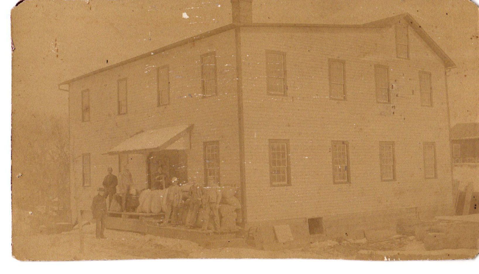 Front of Eagle Mill, gentleman unidentified. Picture was found in a trunk purchase from the Butts Family auction.Photograph Details