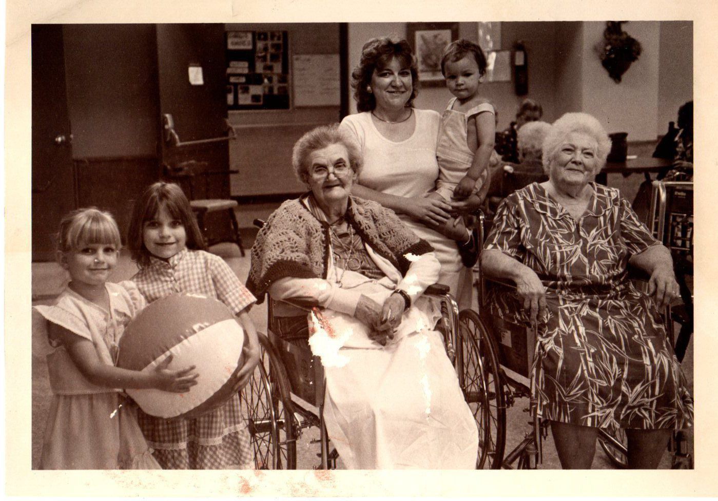 Edgewater Nursing Home, Jane Fife, center who is the Activity Director celebrates National Nursing Home Week. Today was kids day with cake and ice cream.Photograph Details