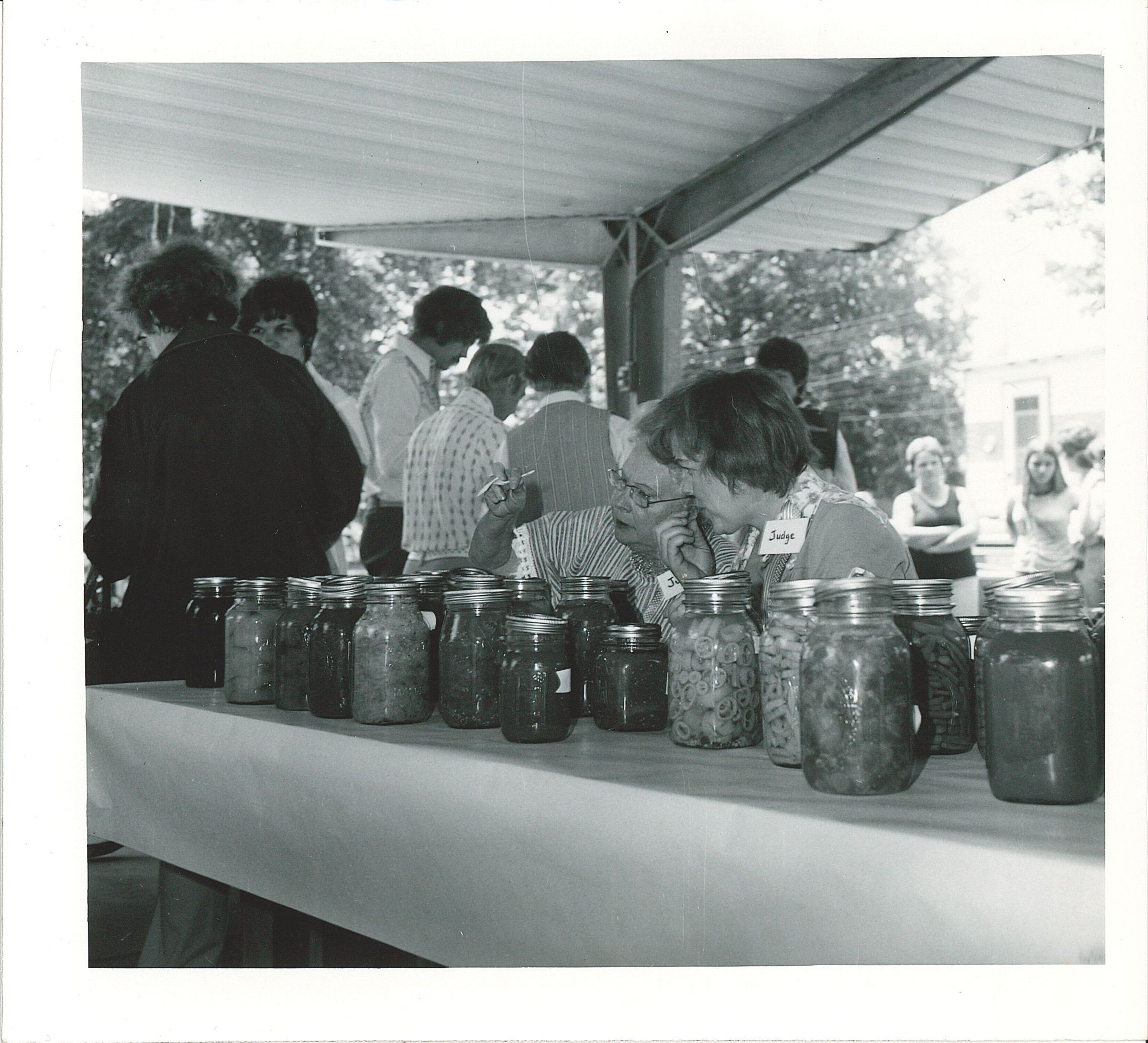 Canned goods being judged. Part of the 1975 or 1976 Bicentennial celebration.Collection
