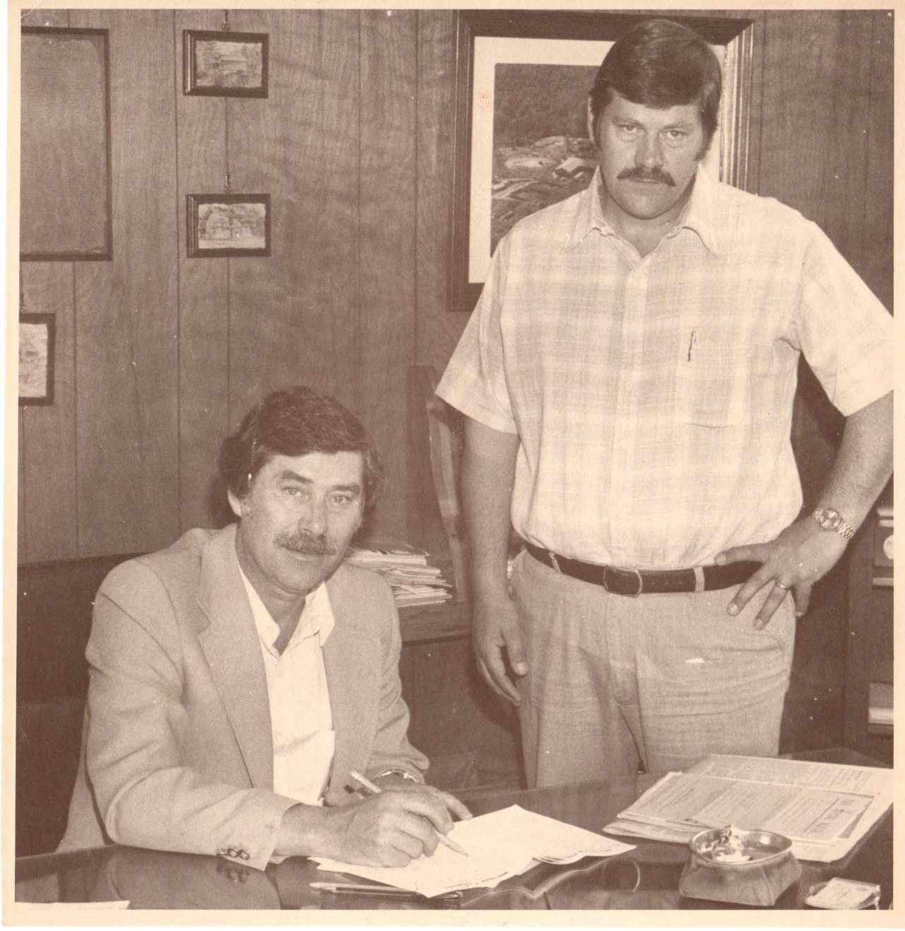 Feist Hardwood, Inc is the first of a series on industries located in Newton Falls and Newton Township located at 1500 Arlington Road, operated by three brothers, Bill and Frank Feist are shown. Norman Feist not shown. Located here in 1966, over 50 employees at the main plant. One of the largest saw mill in Ohio dealing in various types of hardwoods and used in a variety of ways.Photograph Details