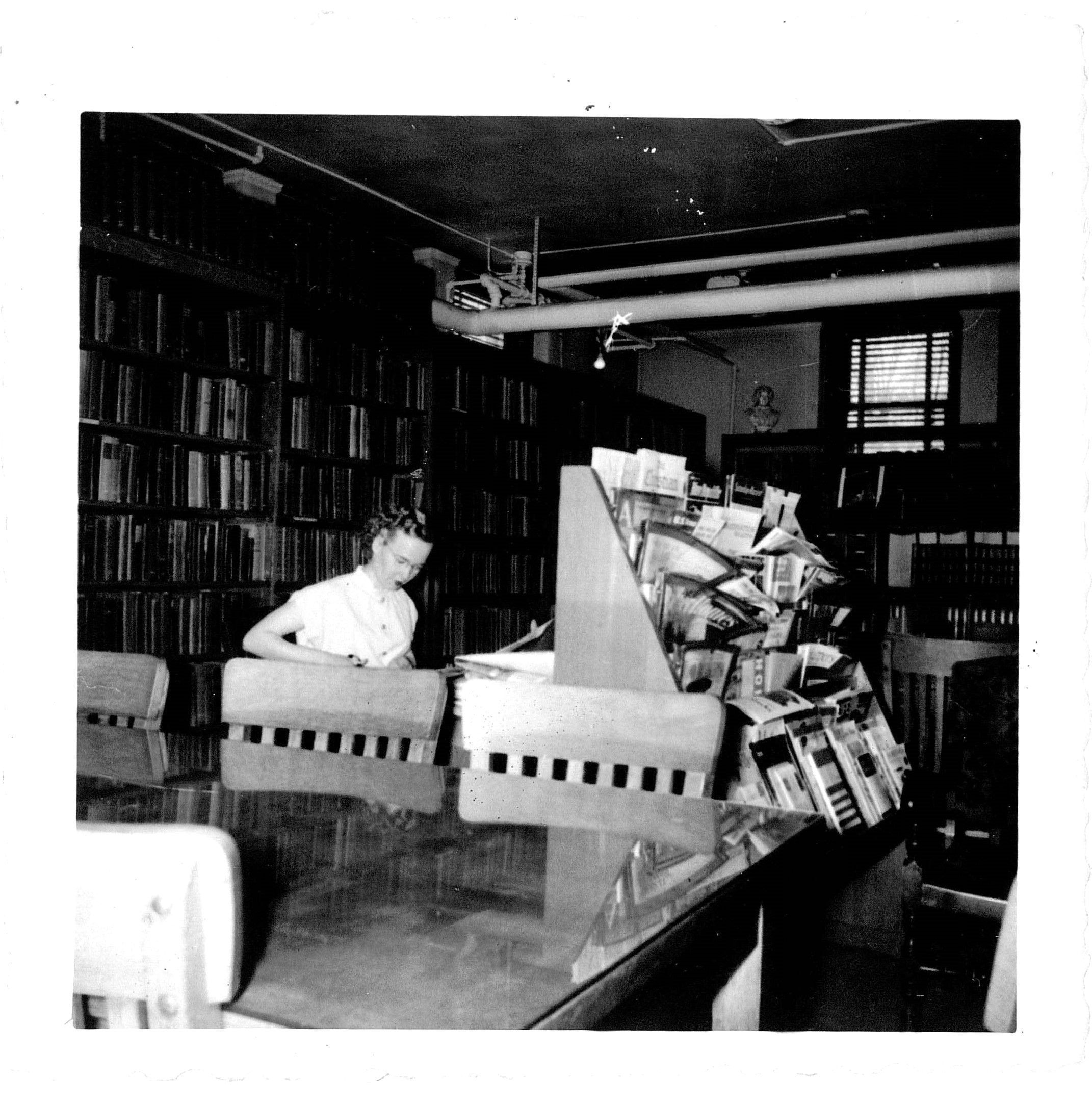 Donnabelle Collins working in the basement library just prior to the move to the new facilityPhotograph Details