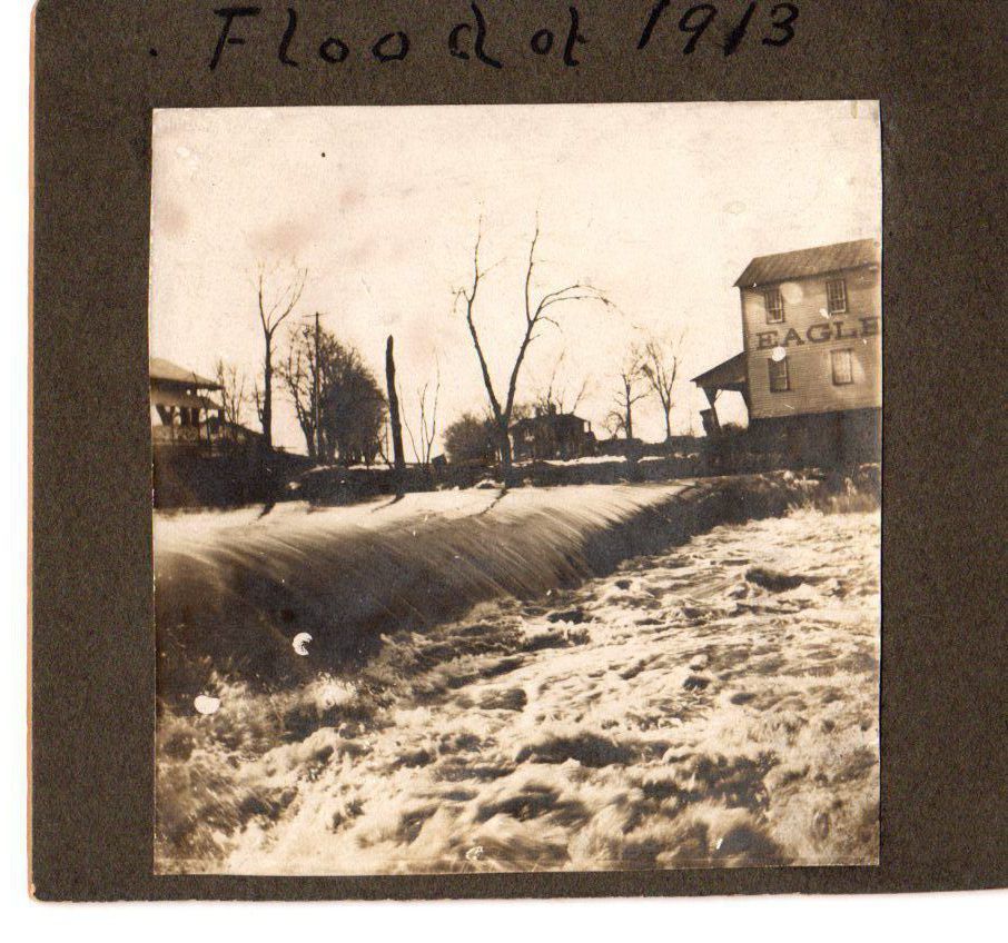Taken during the 1913 flood. Shown is Eagle's Mill and the Wooden Double Covered Bridge at the West Branch of the Mahoning River.Photograph Details