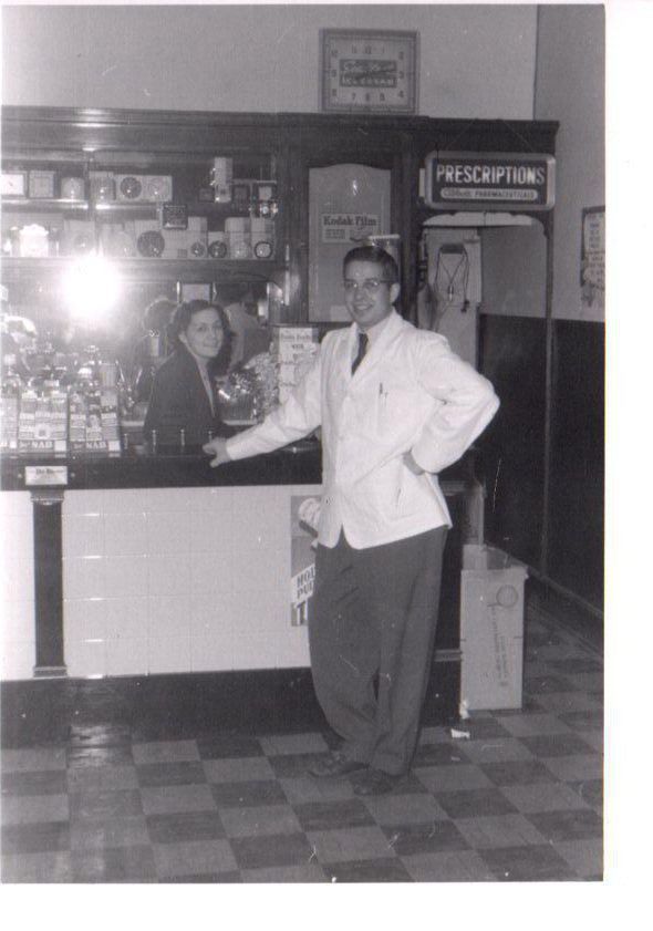 Herbert's Drugstore in Jan 1952. Pictured are Bob McWhiter and Ruth Gordon.Photograph Details