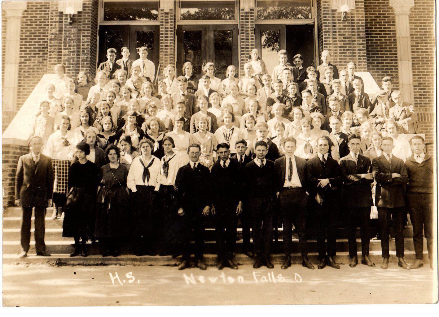 High School Class Photo. First group to use new building on Center Street. Pictured is Mildred Mattes Row 3 #8 (class of 1922) Row 6 # 6 Ruth Hallock Clabaugh. Last row # 1 Paul Yeagley #2 Phil Geary # 6 Phil Koppel.Photograph Details