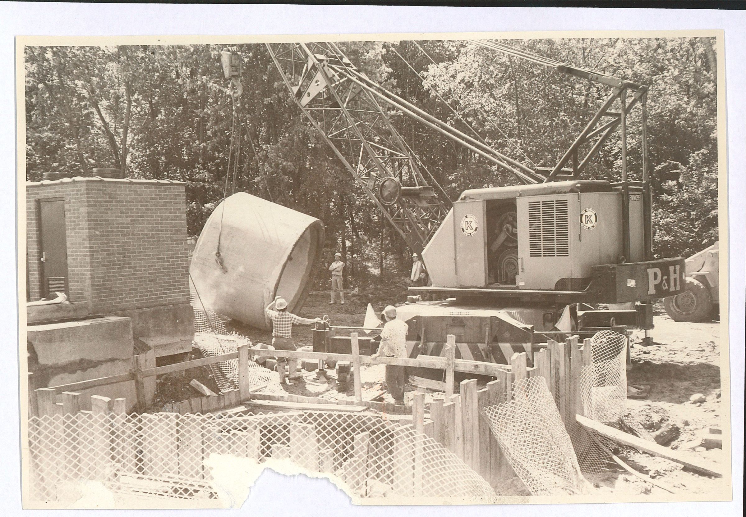 The new no. 6 pump station at the intersection of Main St. and Warren Rd. Kenmore Construction Workers are preparing to place on of three 14 ton pipes into the ground.Acquisition