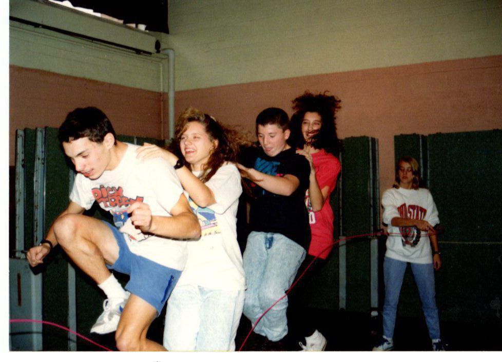 Members of the LaBrae High School Beta Club concentrate as they participate in a jump rope for heart event. Left to right Peter Politsky, Amy Spahlinger, Gary Sanderson, Hedi Meaders and Rachel Suonger.Photograph Details