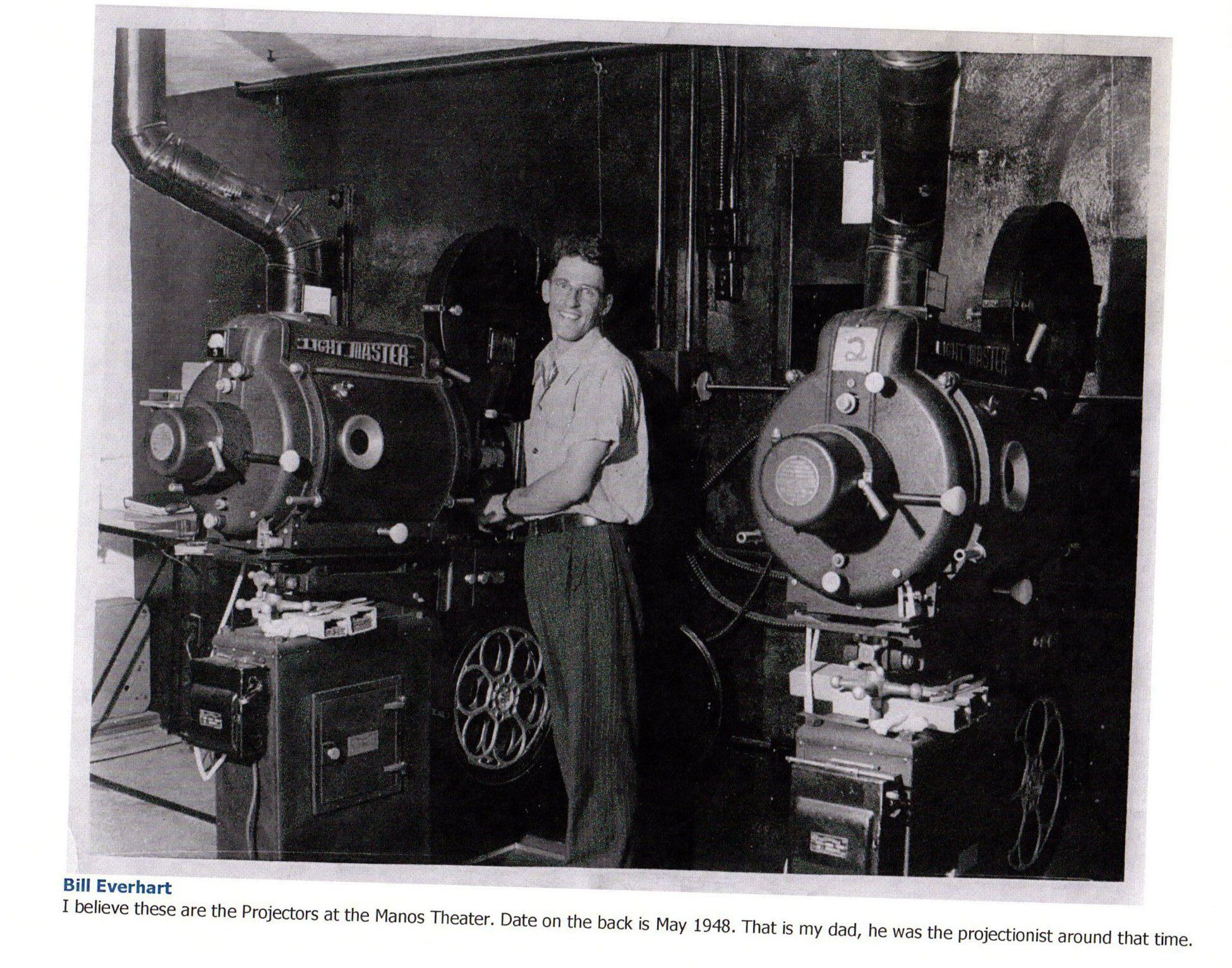 Manos Theater in 1948, Bill Everhart was the projectionist during this time.Photograph Details