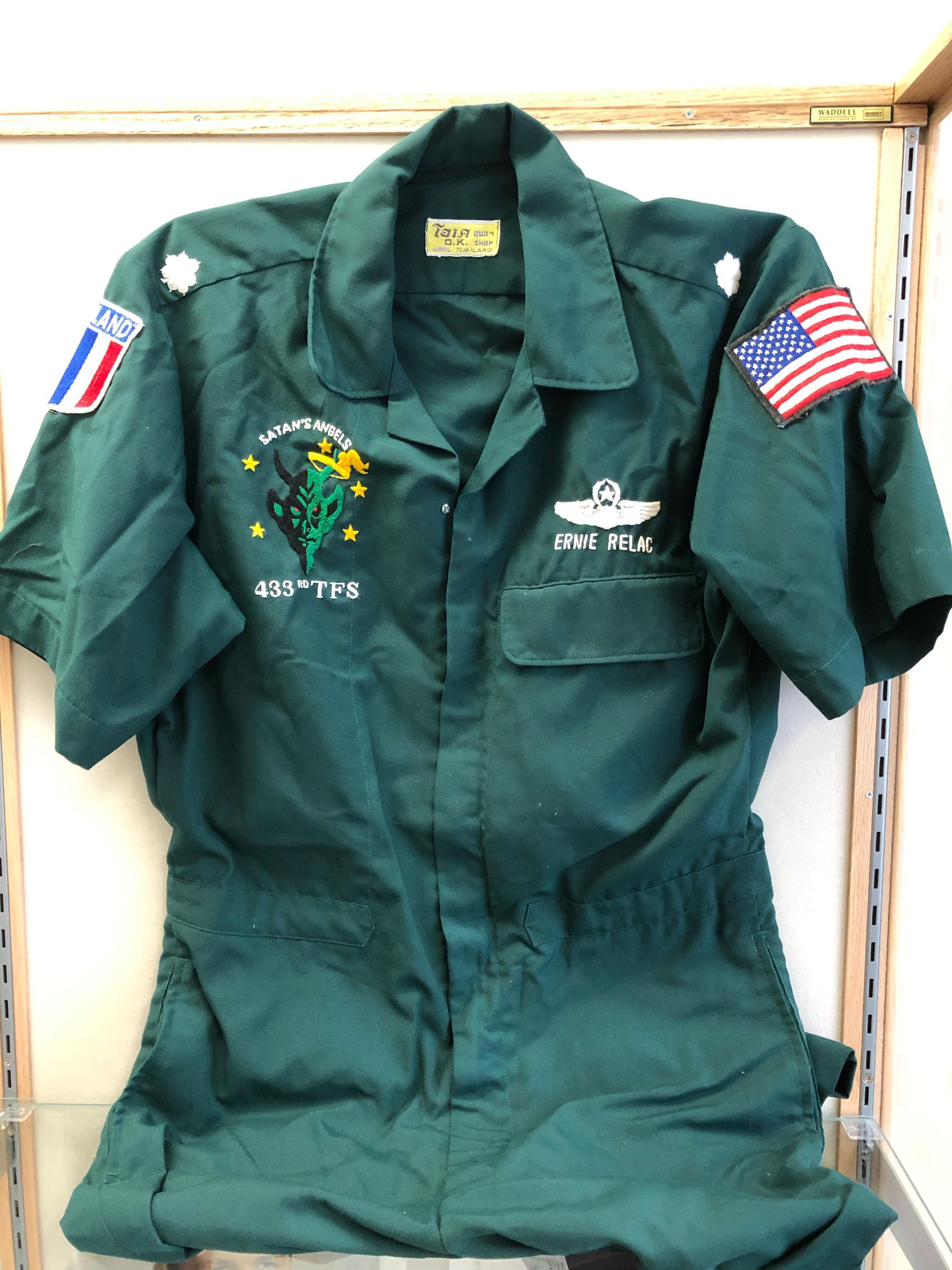 Military jumpsuit belonging to Ernest Relac and used during his Air Force career. Relac was a member of the 433rd TFS "Satan's Angels".Acquisition