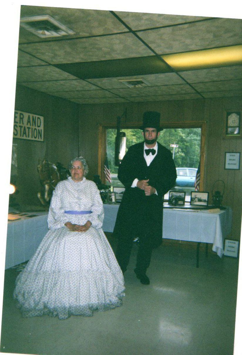 Viewing the articles on display in the Community Center was Pres. Abraham Lincoln and Mary Todd during Newton Falls Bicentennial event.Photograph Details
