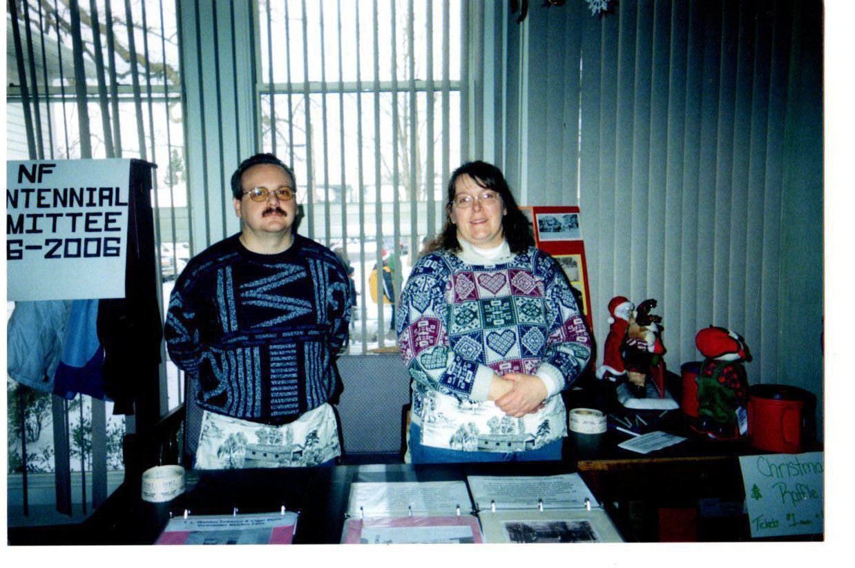Two workers of the Newton Falls Bicentennial Committee, Zane Stowe and Sara Davidson at the Community Center.Photograph Details