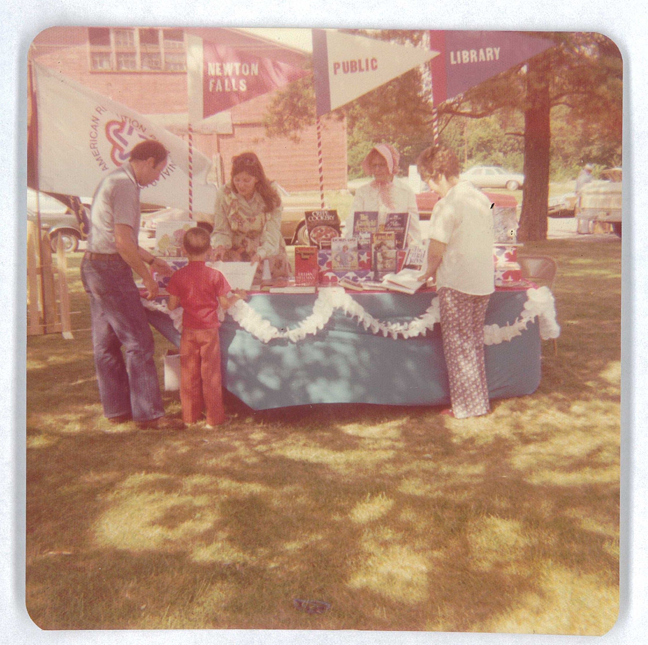 Newton Falls Public Library at the Newton Falls Bicentennial Festivities, July 1976 at the newton Falls Community Center. Left to Right Jim and David Wynkoop, Carol Crosby, Elberta Swiger, Donnabelle CollinsPhotograph Details