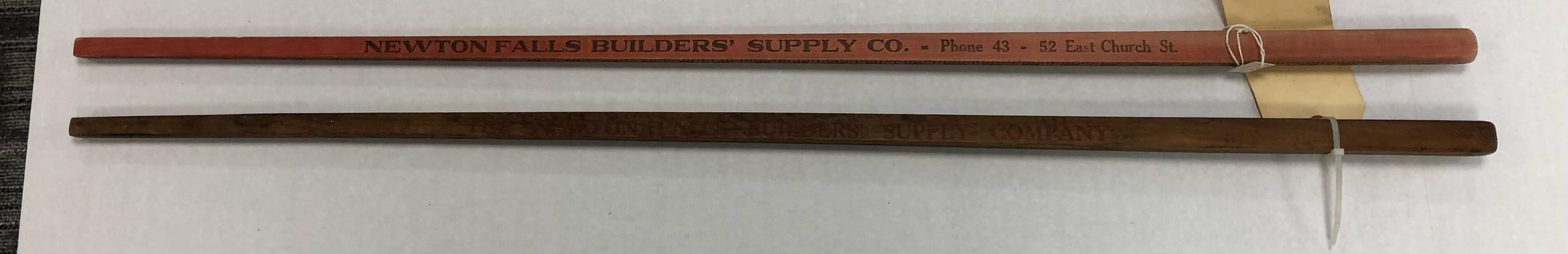 Two yardsticks from Newton Falls Builders' Supply Co., which was owned by Howard Miller.Acquisition