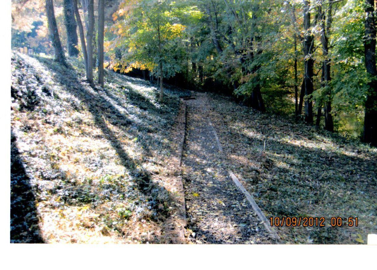 This pathway in East Side Cemetery led to an old mausoleum that is near the old Potter field built into the ground. The value was constructed in 1907.Photograph Details