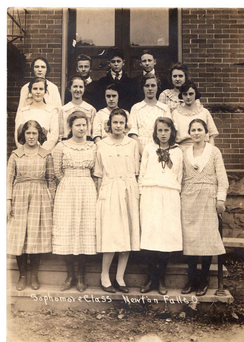 Sophomore Class of Newton Falls High, Middle row, 2nd from left: Ruth Hallock (Clabaugh) 1st row, middle, Mildred Mattes.Photograph Details