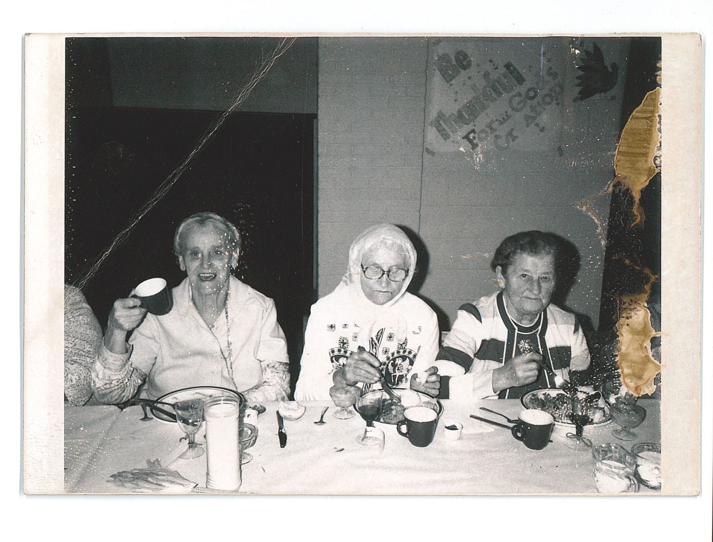 Senior Citizens of St. Joseph Church enjoyed a Thanksgiving dinner. Left to right: Mrs Mary (Furchak) Hildack, Mrs Mary (Basista) Ronik ans Mrs Hellen (Prloh) HudakPhotograph Details