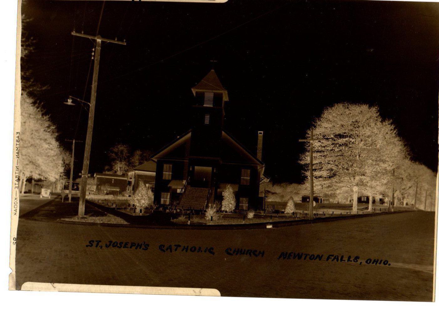 Negative of St. Joseph's Church on corner of Ravenna Road and Quarry St, Newton Falls, Ohio. Built in 1923.Photograph Details