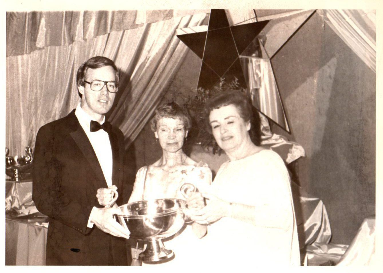 Darene Radaker center, of Newton Falls received a silver loving cup from officials of Stanley Home Products for her outstanding sales record. The ceremony was held in Massachusetts.Photograph Details