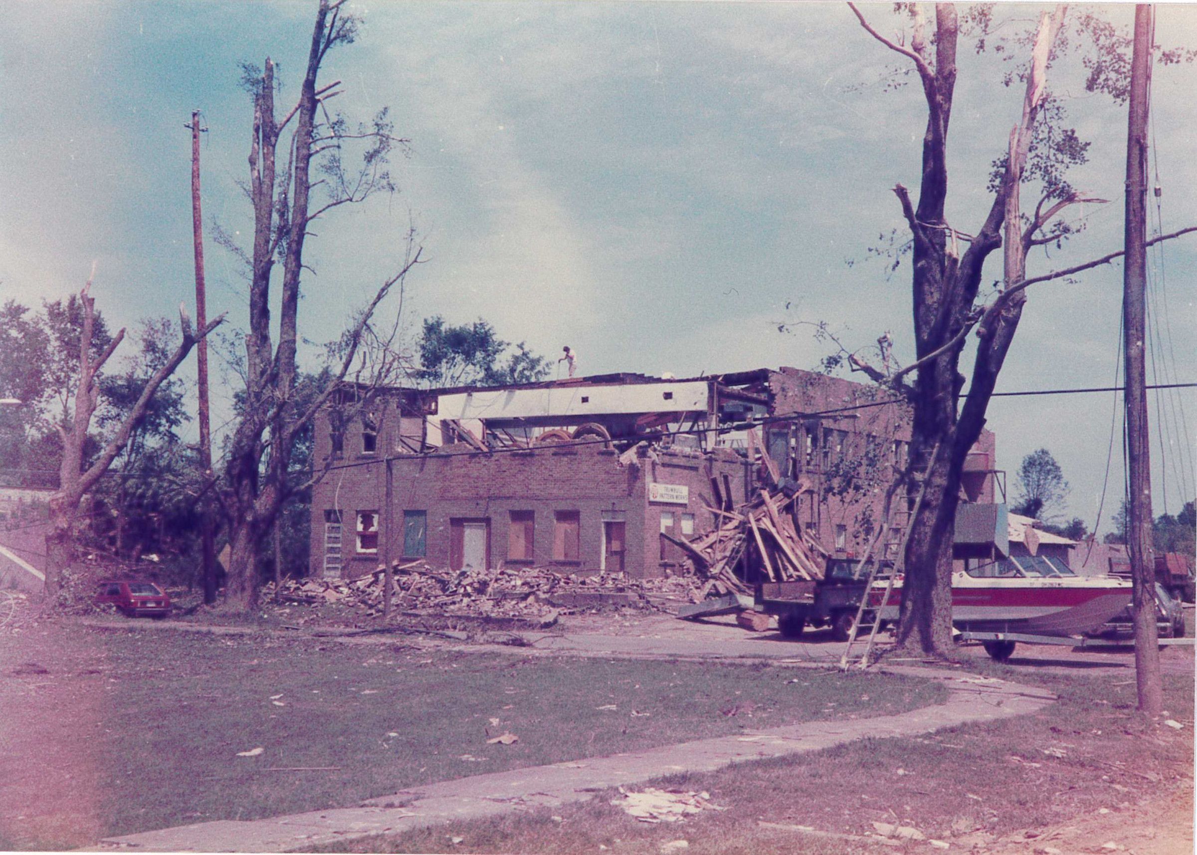 Tornado damage of Trumbull Pattern Works on Warren Road.Photograph Details