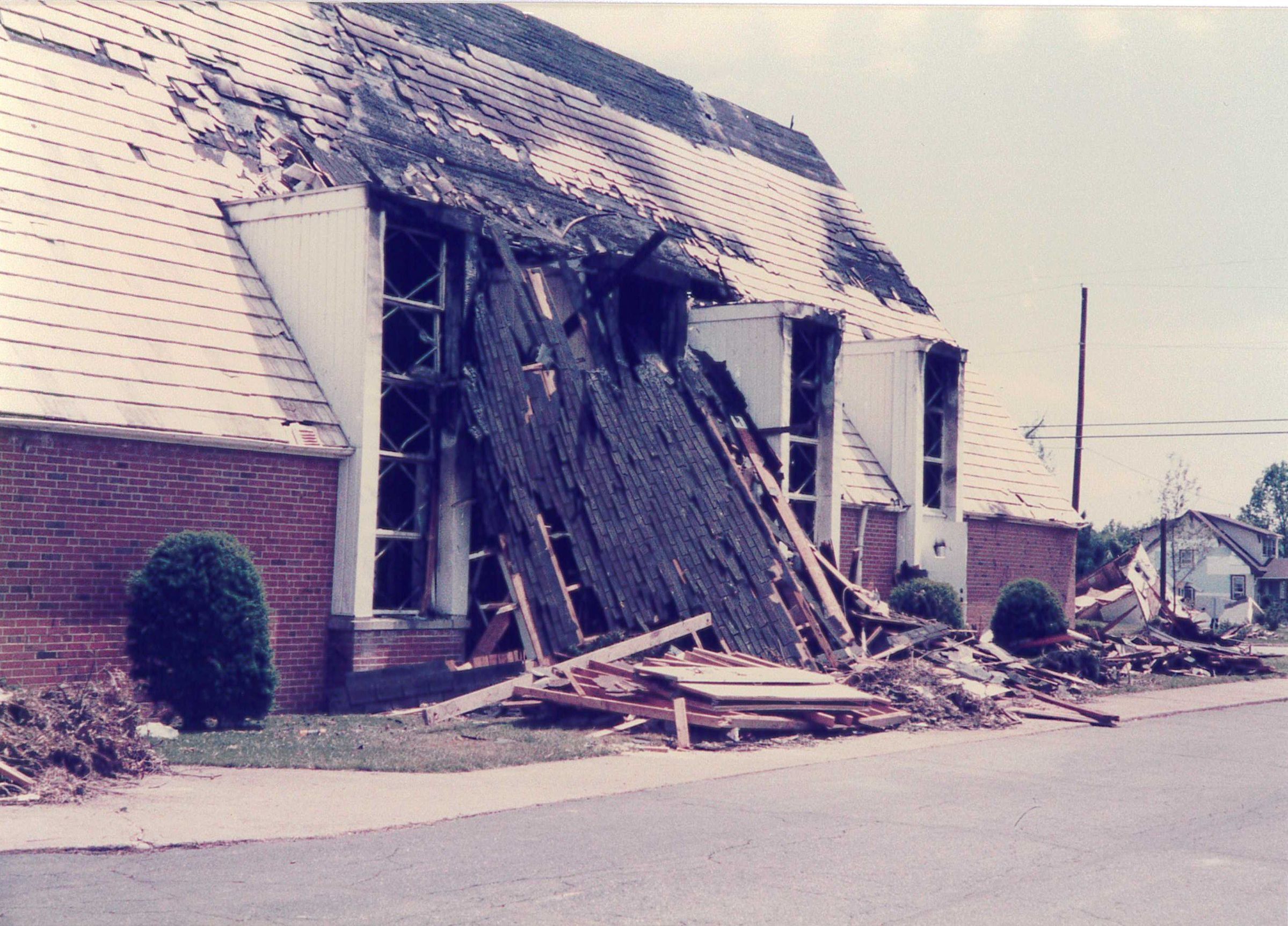 Damaged building from the tornado.Collection