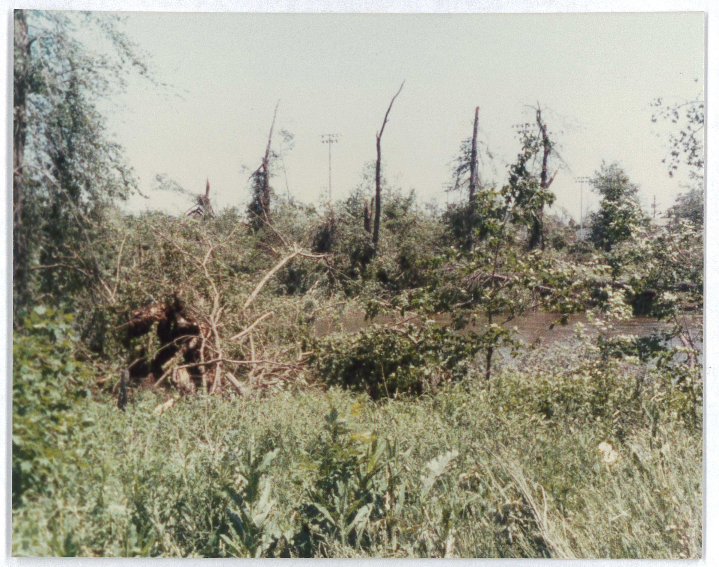 Fallen trees near Newton Lumber looking across the river to the stadium.Collection