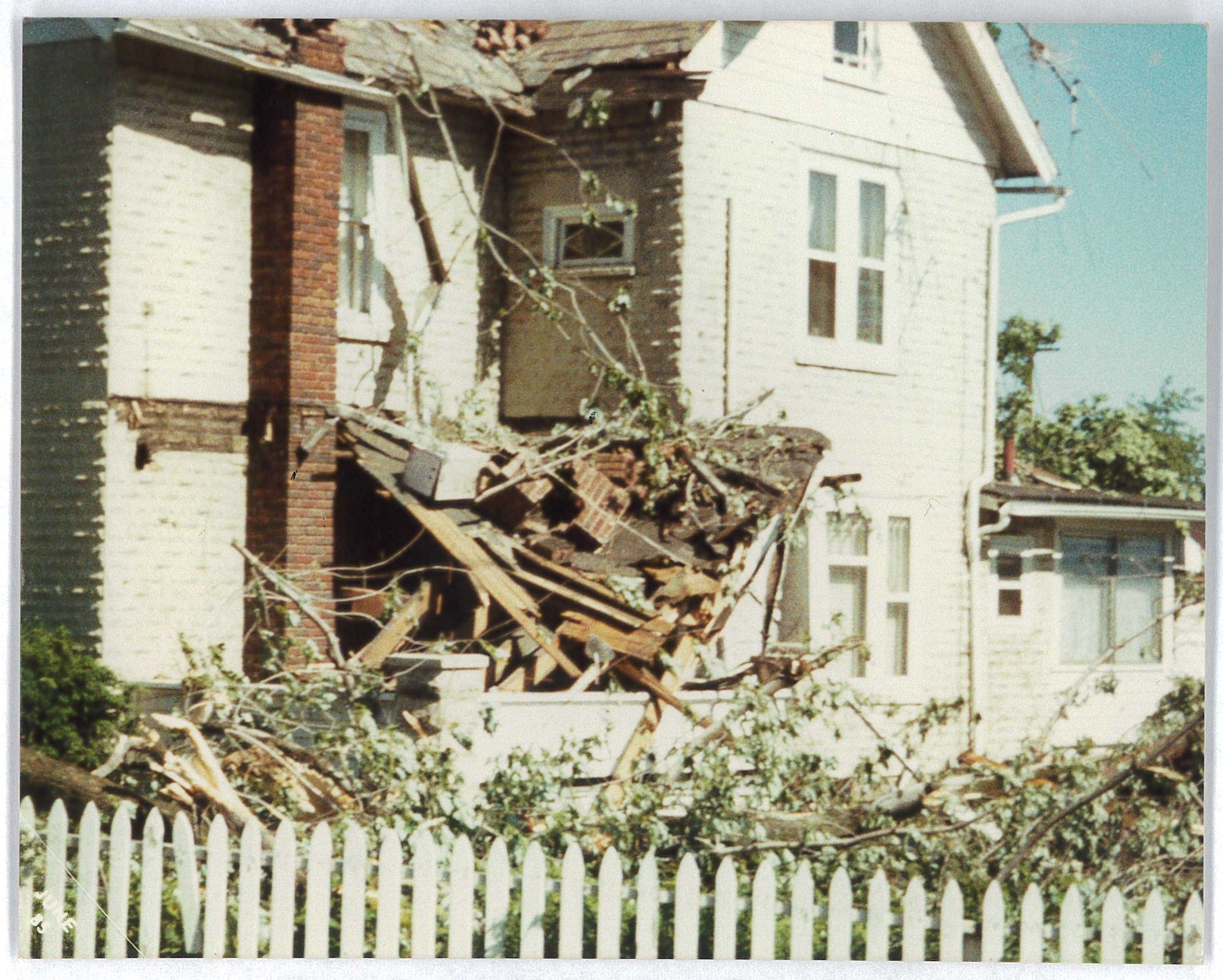 Damage done to a house next to the covered bridge.Collection