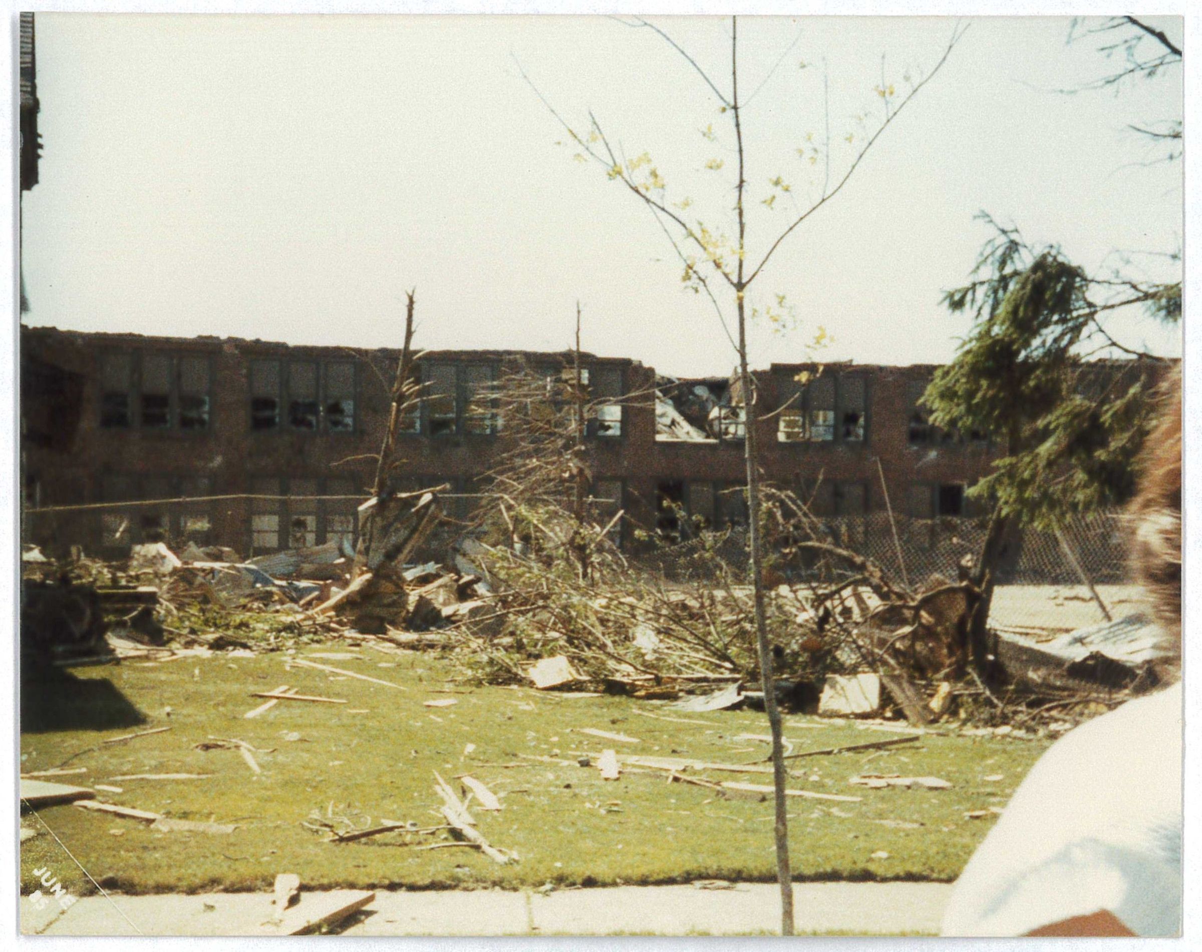 Tornado damage done to the backside of the Jr. High School.Collection