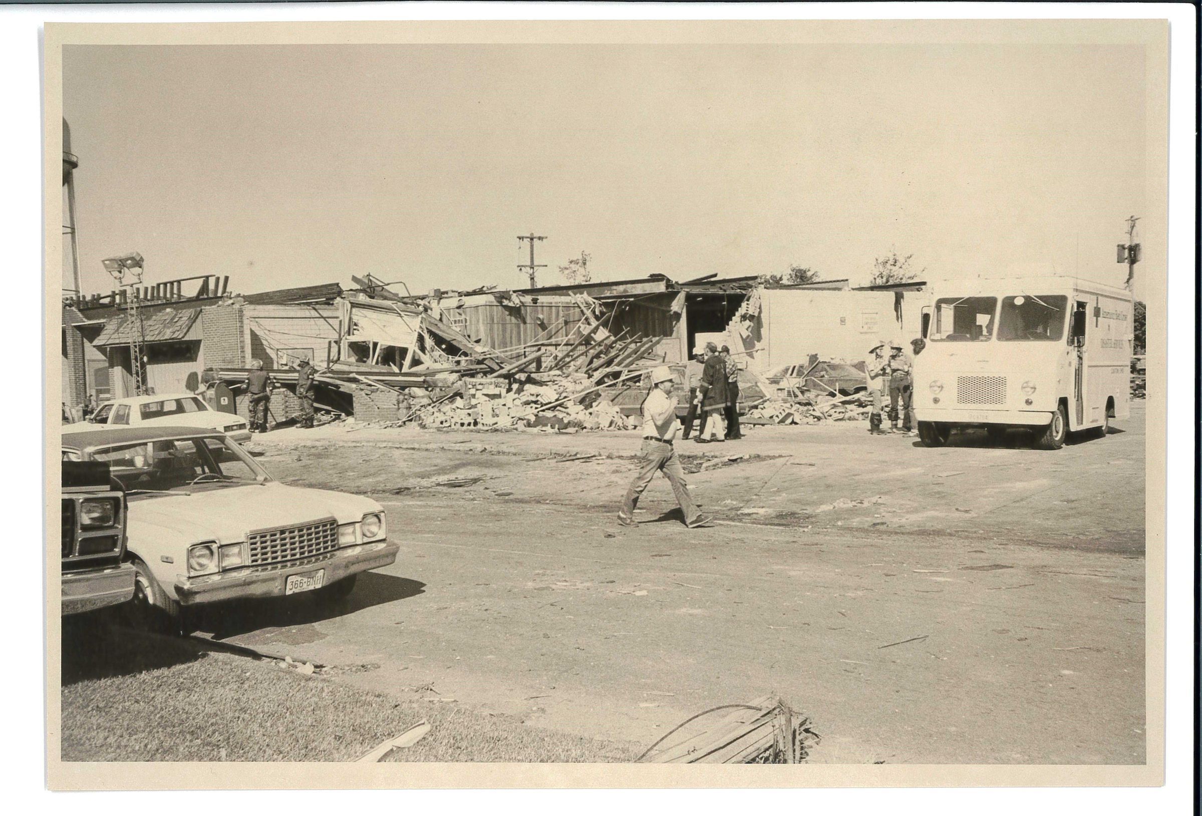 Bussinesses along North Canal Street were hit more than most. Pictured is what remains of Newton Lanes (left) the post office (Right)Photograph Details