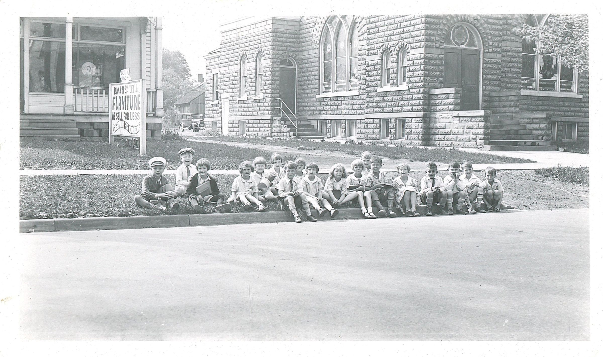 A Sunday School class pictured between the Newton Falls United Methodist Church and Dana Bailey Jr. Furniture on Center Street.Photograph Details
