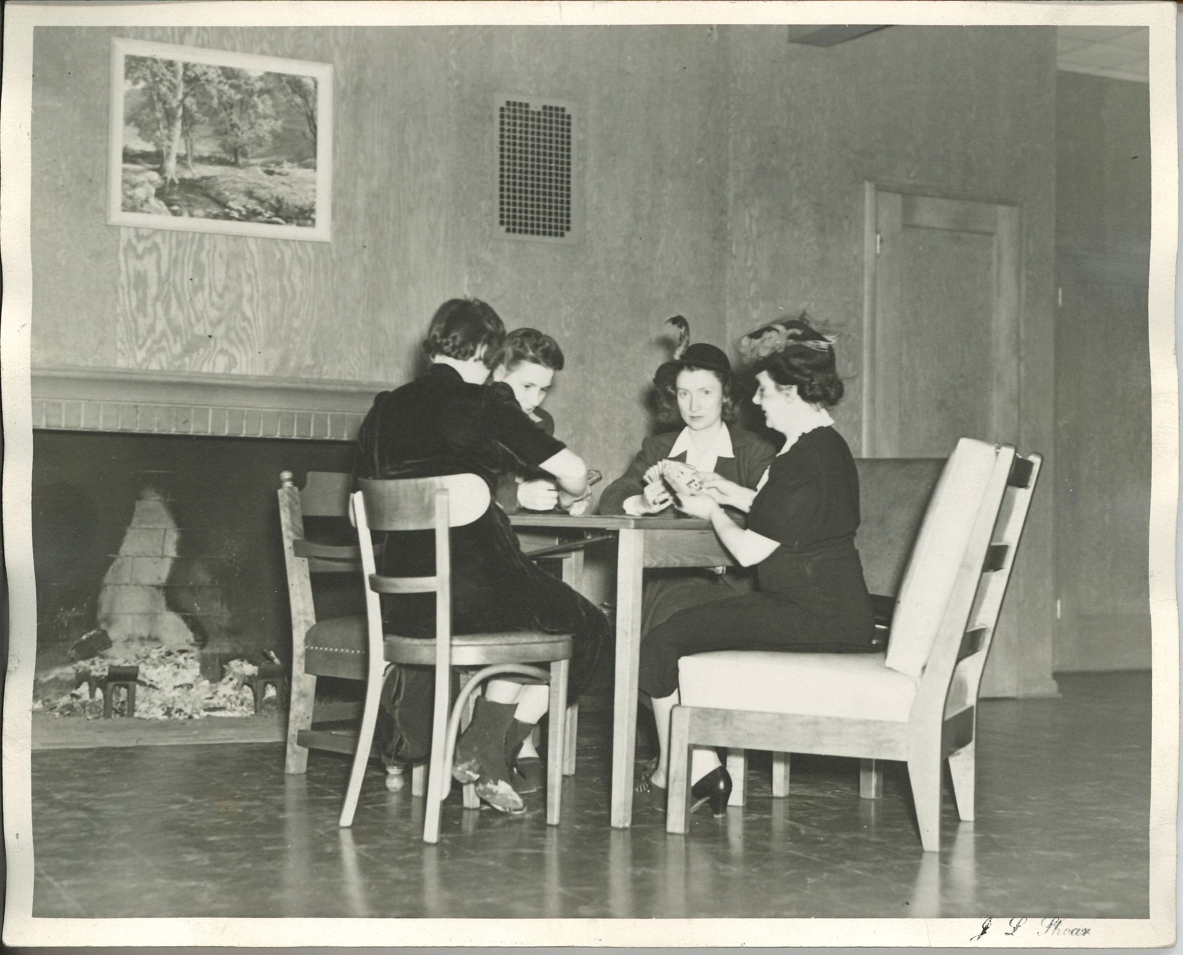 Playing cards in the lobby area of the USO Club ca. 1942 (2 copies)Photograph Details