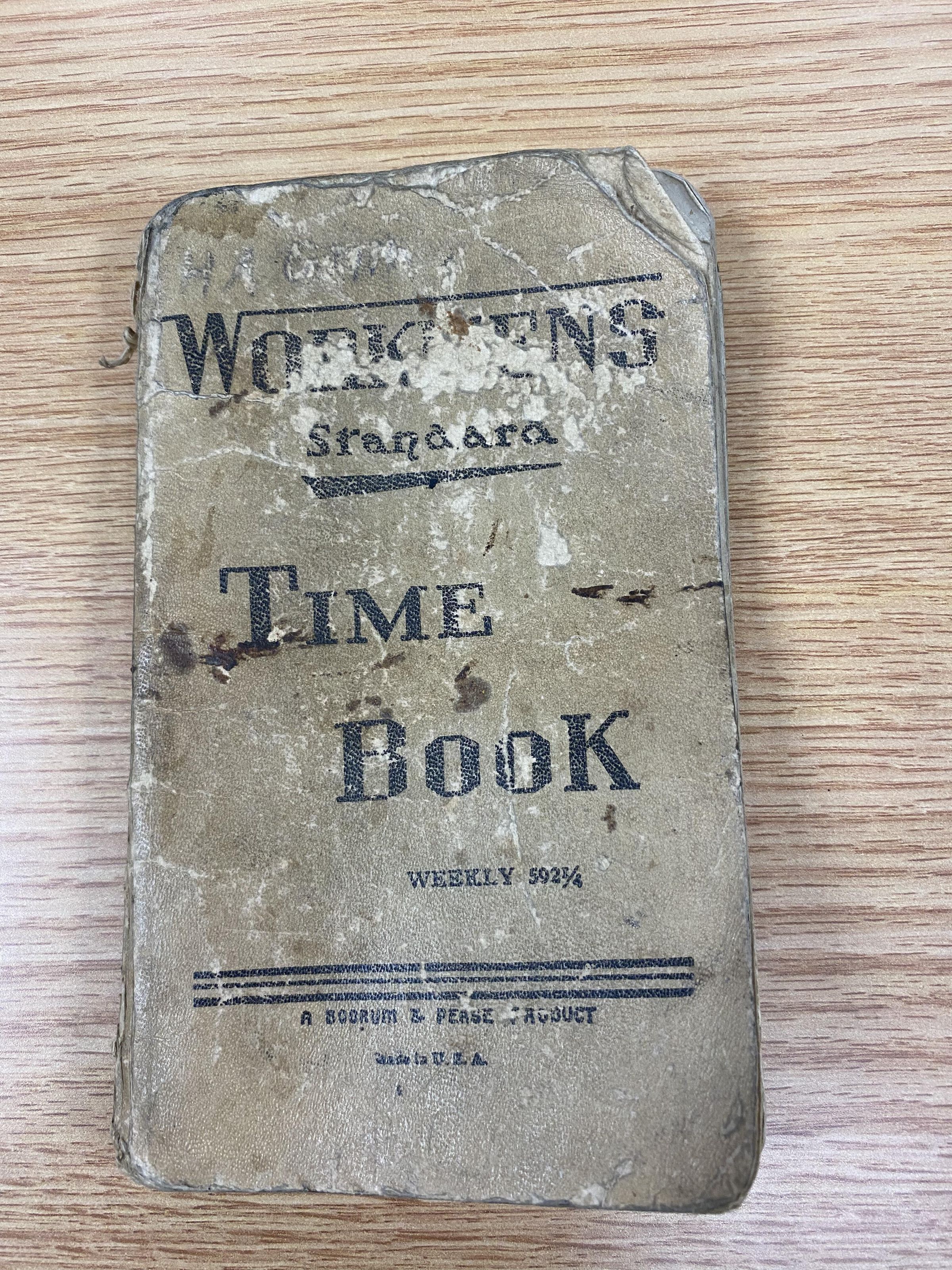 This weekly timebook belonged to H.A. Grim. Includes names of men who were under his authority at the Ravenna Ordnance PlantCataloged By
