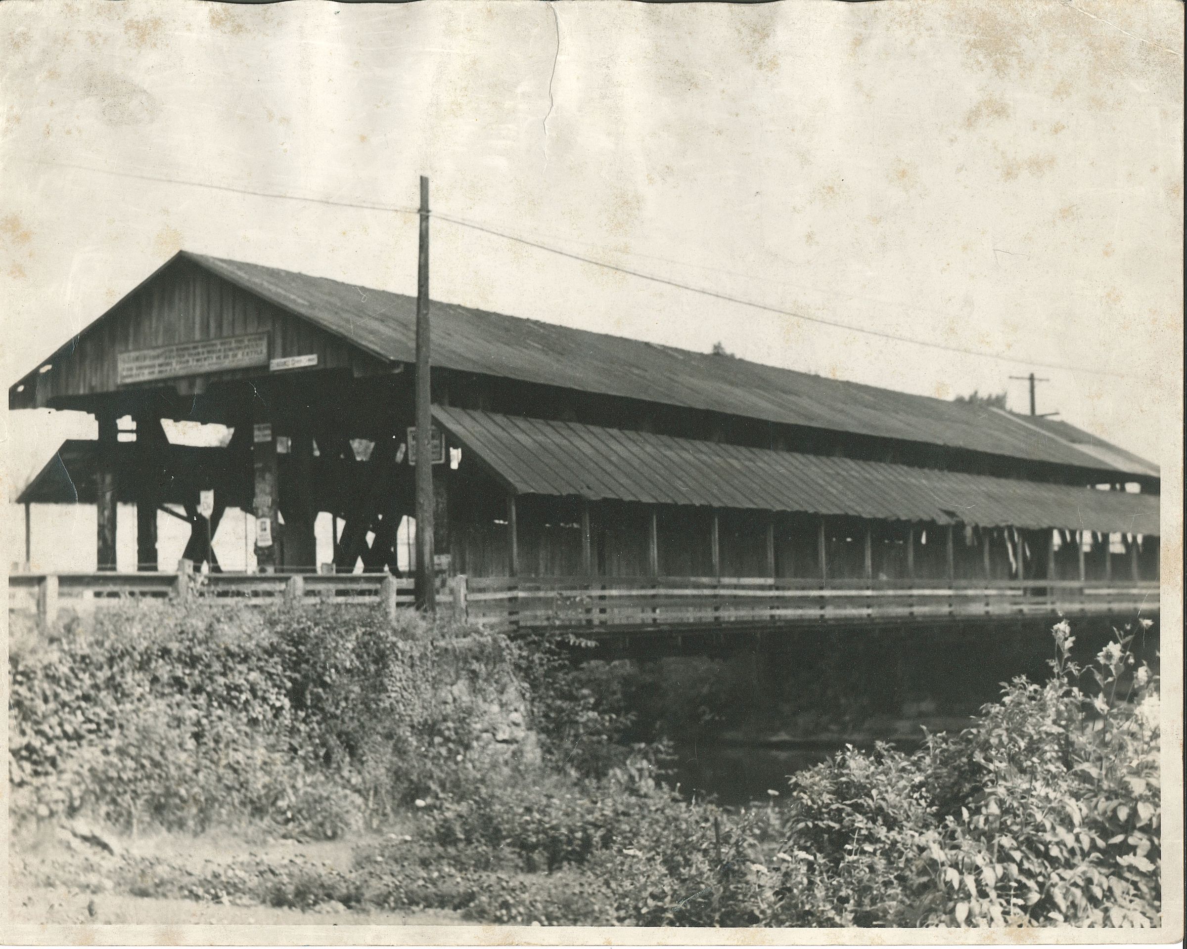 Double covered bridge over the west branch of the Mahoning River. The bridge was built in 1856 and demolished in 1942.Collection